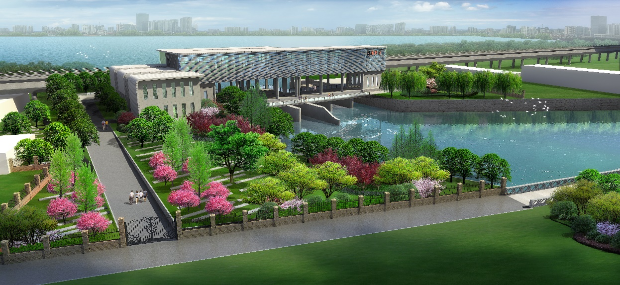 工程位于浙江省寧波市江北區(qū)甬江防潮堤沿線,新建排澇閘一座,總凈寬21m,泵站一座,排澇流量40m³/s。工程建筑設計統(tǒng)一運用混凝土、鋼、玻璃等材質(zhì),與河流、景觀巧妙結(jié)合,在體現(xiàn)水利設施特色的同時,與城市景觀融為一體。
